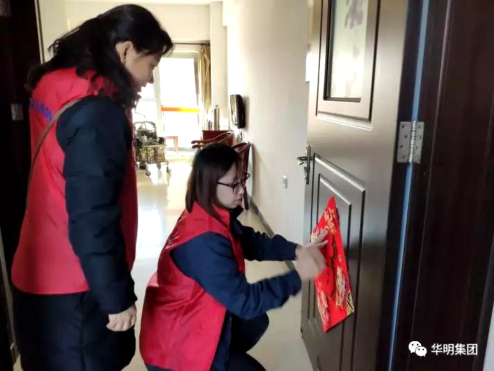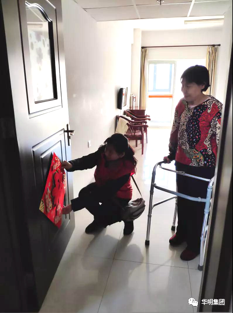 志愿者們到達(dá)養(yǎng)老中心后,有的在一樓大廳張貼充滿春節(jié)氣息的吊錢,有的來到老人的房間里,親手為老人的居室張貼福字與老人們促膝圍坐,親熱地拉起了家常。詢問了老人們在敬老院中的生活狀況,并向他們致以新春的問候。當(dāng)老人看到志愿者們親手為他們貼上去的福字,吊錢后,喜笑顏開,對我集團(tuán)志愿者豎起了大拇指。