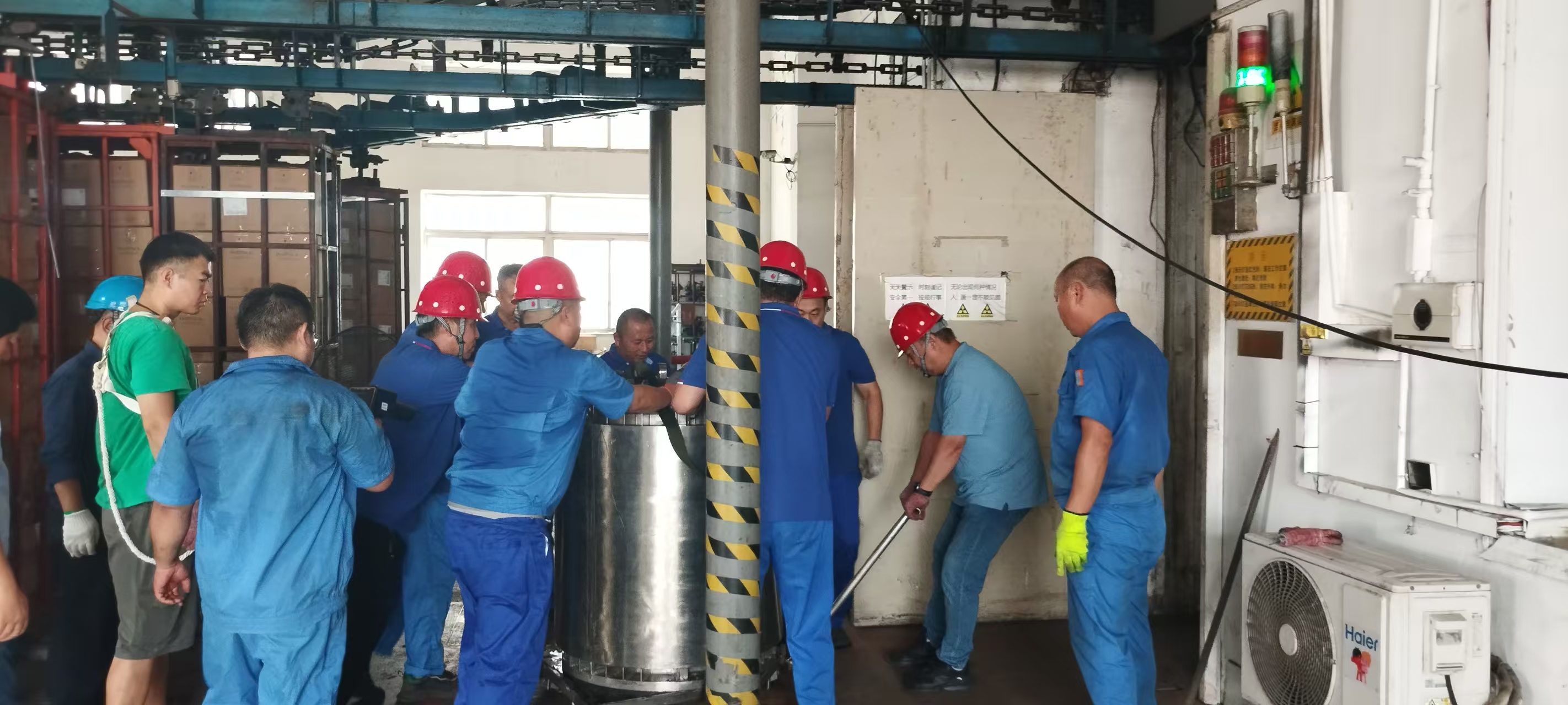 2025年是三批次購入的38枚鈷源的法定退役窗口,全體員工及支持人員,齊心協(xié)力,完成了即將退役的38枚源棒的下架和10枚新購源棒的上架工作,過程安全,結(jié)果圓滿。同時,對于源板、護(hù)源罩、鋼絲繩等進(jìn)就行了水下攝像掃描,確保每一顆小小螺絲釘,每一股每一絲鋼絲繩無毛刺,無隱患,確保每一道安全連鎖靈敏有效。下午六點(diǎn)順利升源,正常投入生產(chǎn)。華明輻照將繼續(xù)深耕輻照加工領(lǐng)域,拓展新市場,推動企業(yè)高質(zhì)量發(fā)展,迎接更加嚴(yán)峻的挑戰(zhàn)。