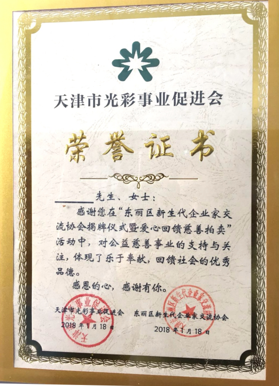 東麗區(qū)企業(yè)家協(xié)會拍賣捐獻獎
