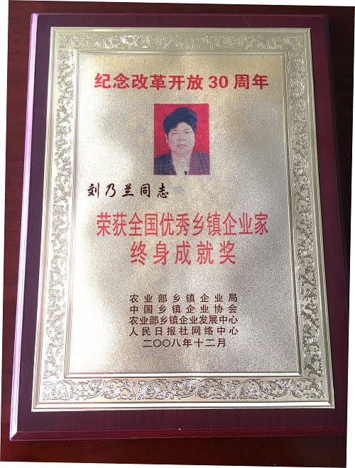 全國優(yōu)秀鄉(xiāng)鎮(zhèn)企業(yè)家終身成就獎