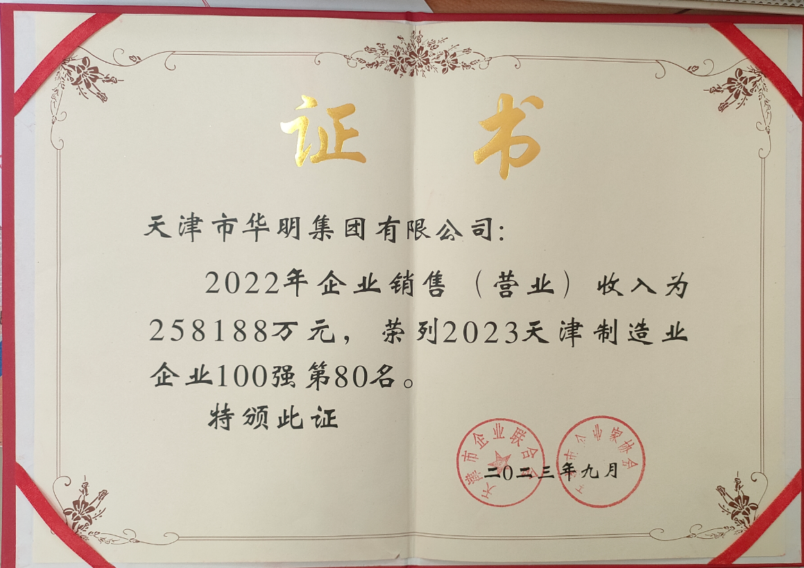 2022年天津制造業(yè)企業(yè)100強(qiáng)第80名