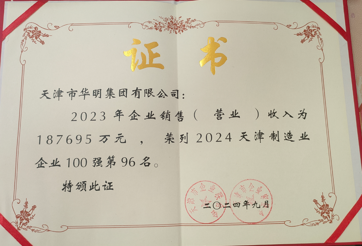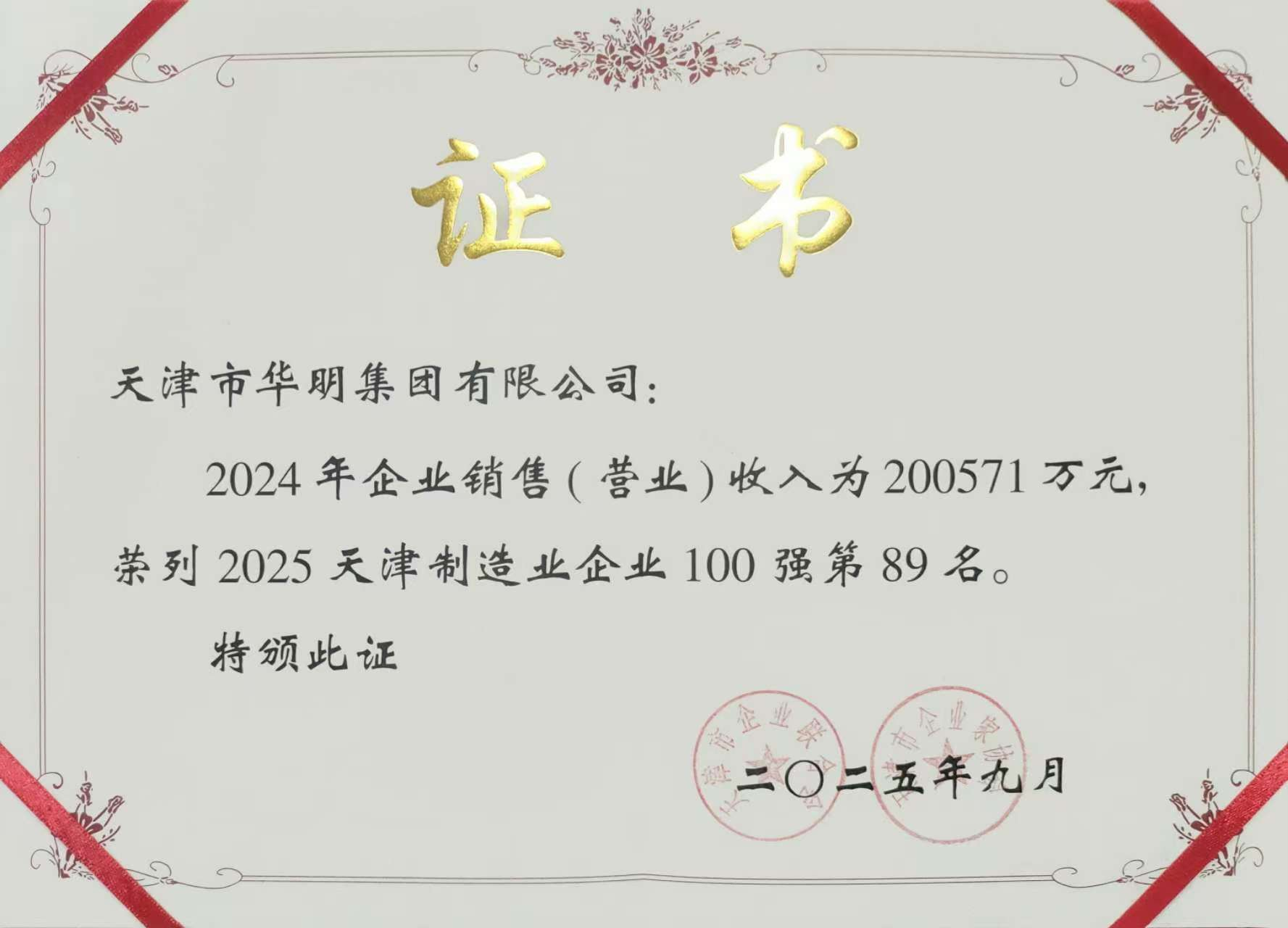 2025年天津制造業(yè)企業(yè)100強(qiáng)第89名