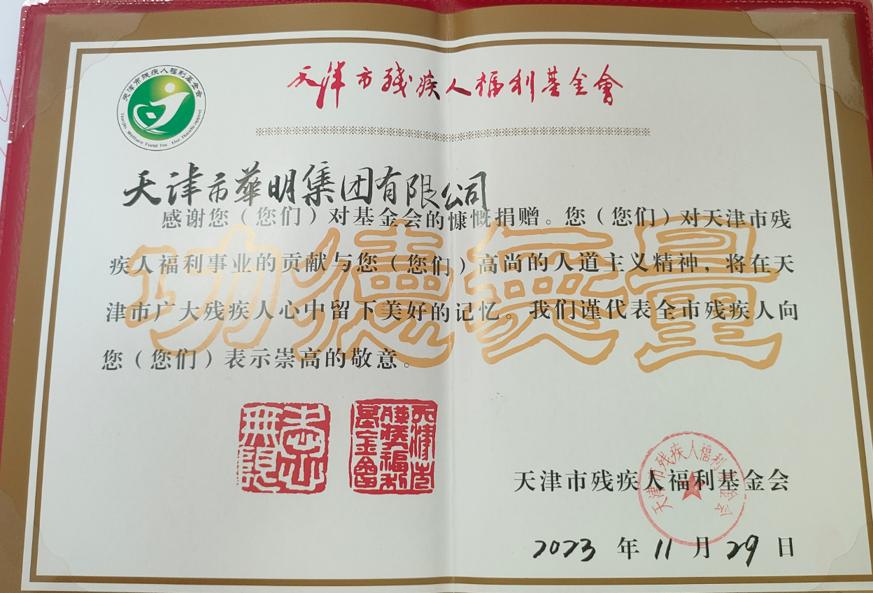 天津市殘疾人福利基金會(huì)捐贈(zèng)證書(shū)