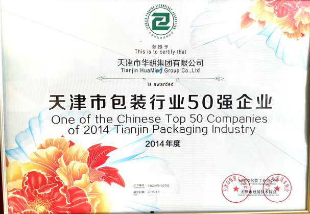 2014年被天津市包裝技術(shù)協(xié)會評為天津市包裝行業(yè)50強企業(yè)